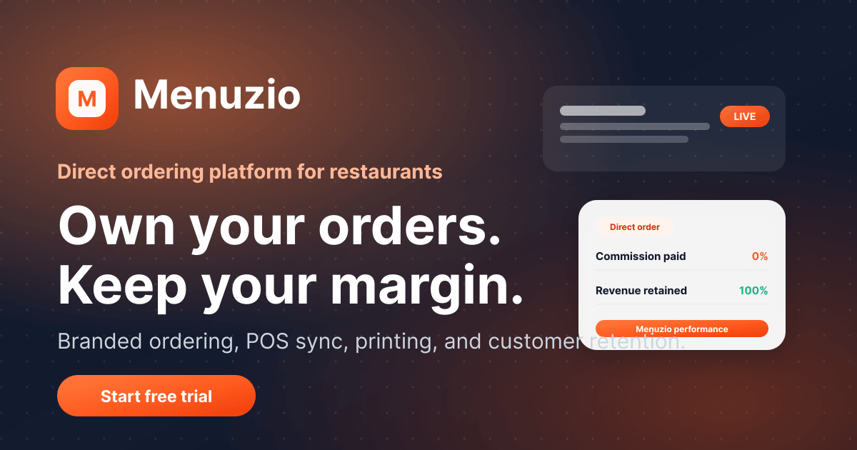 No — Menuzio is a direct ordering platform, not a delivery marketplace. You manage your own drivers. This keeps you in control of the delivery experience and means you pay zero commission to a third-party network.